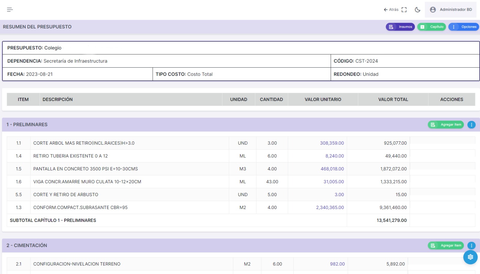 Los presupuestos elaborados pueden ser exportados en formatos compatibles con los formatos de los pliegos tipo de Colombia Compra Eficiente.